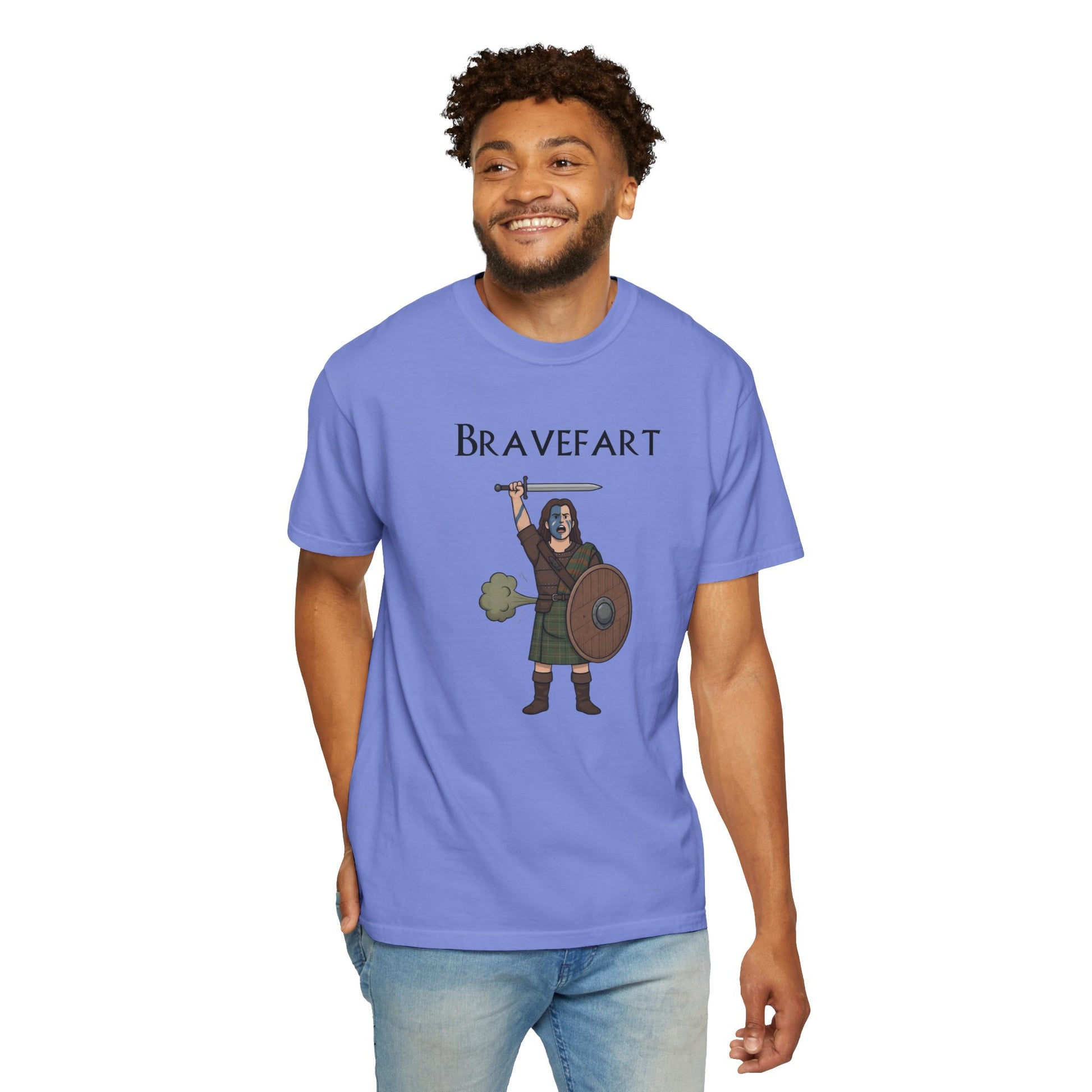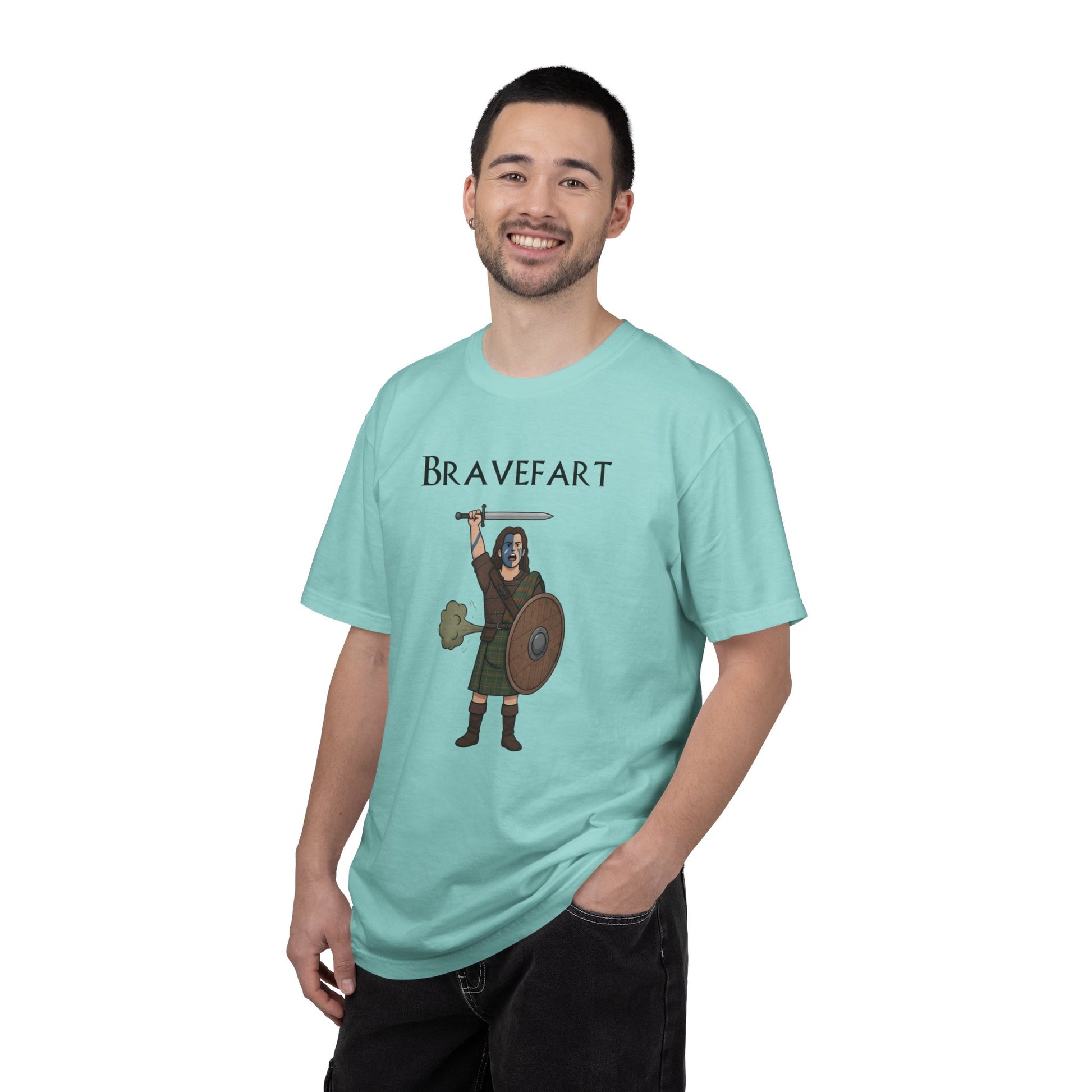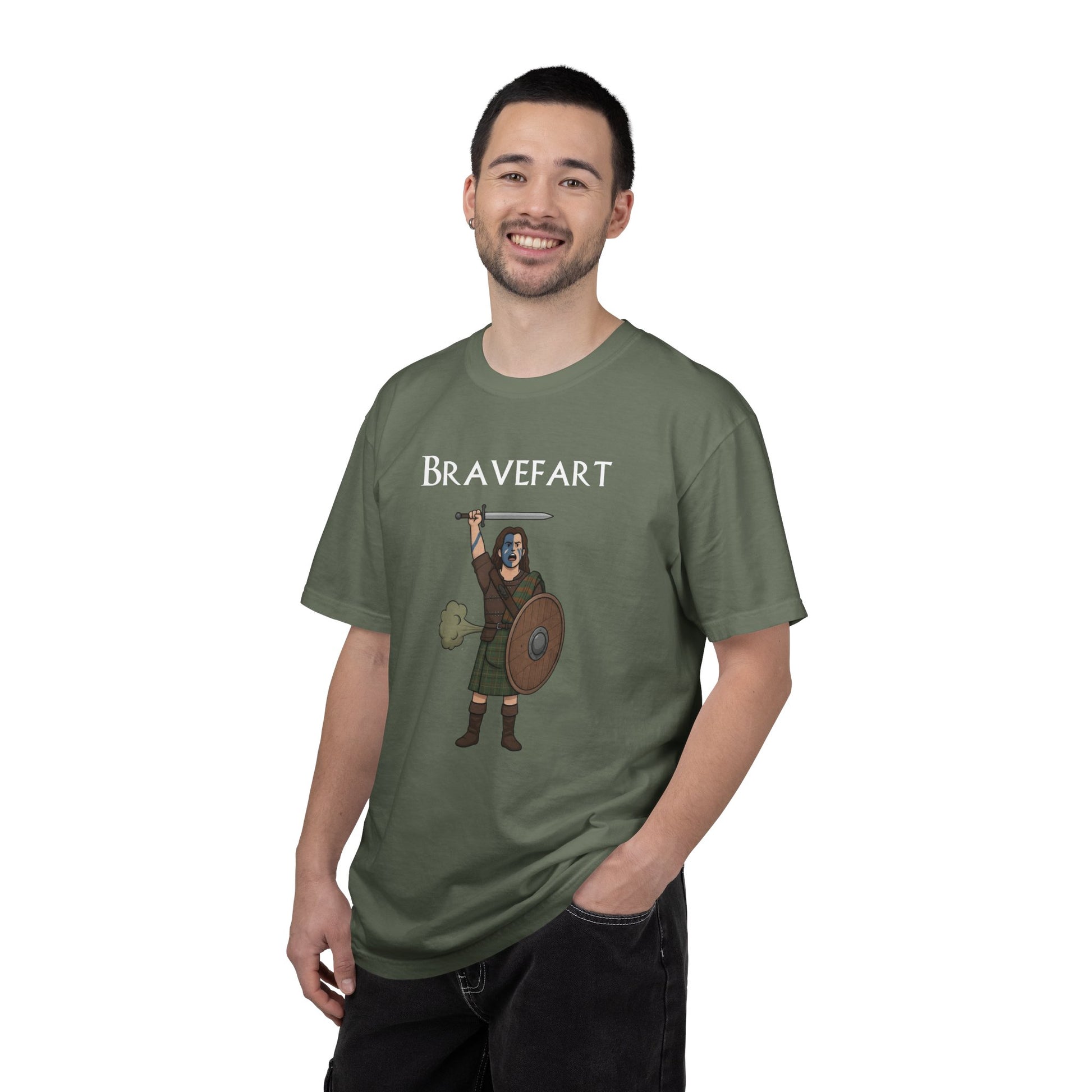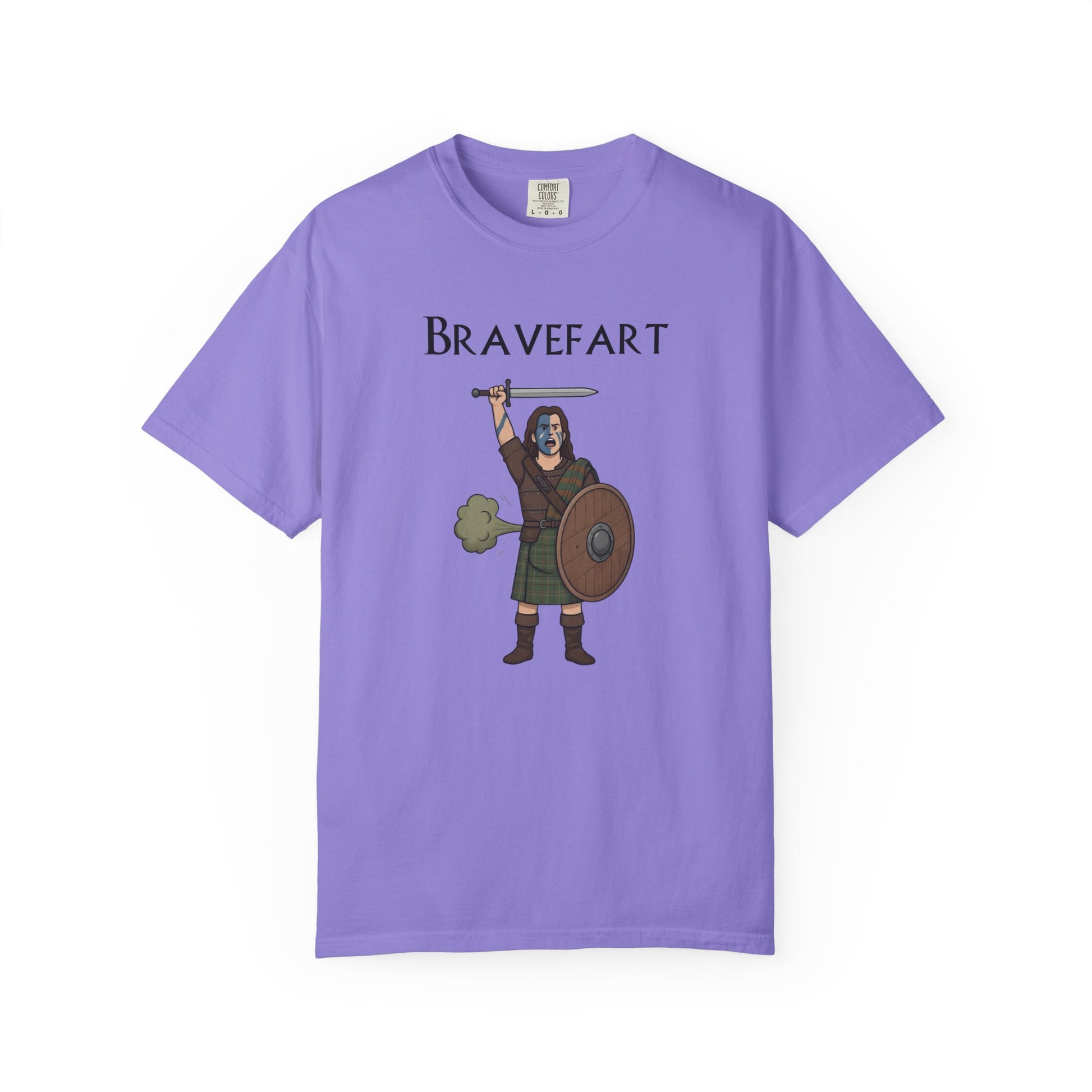 With this epic parody tee, William Wallace charges into battle—face painted blue, wild hair flying, massive sword raised high—but a huge green toxic fart cloud billows out behind him like battlefield smoke—"Bravefart": They may take our lives...but they'll never take our freedom...from farts!