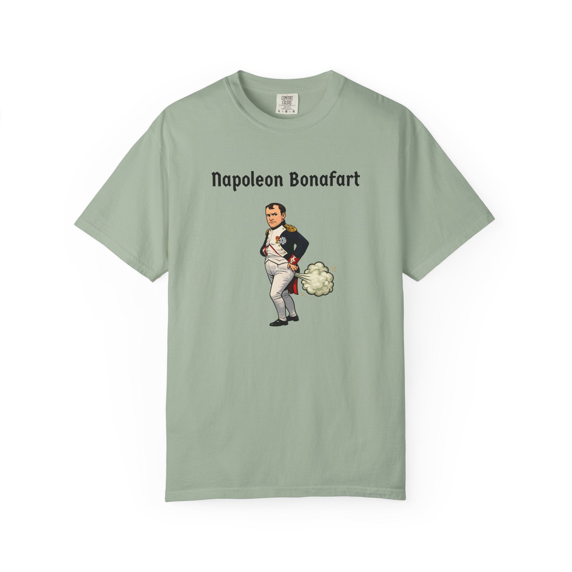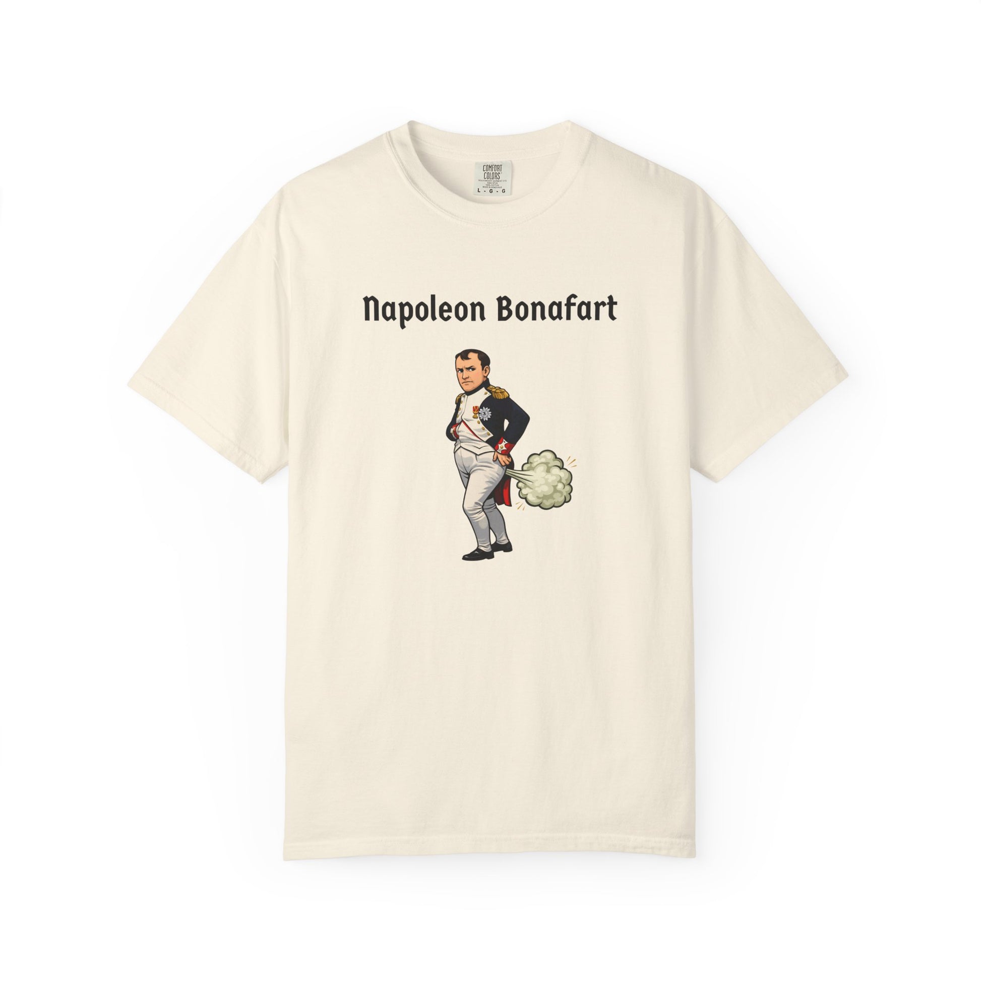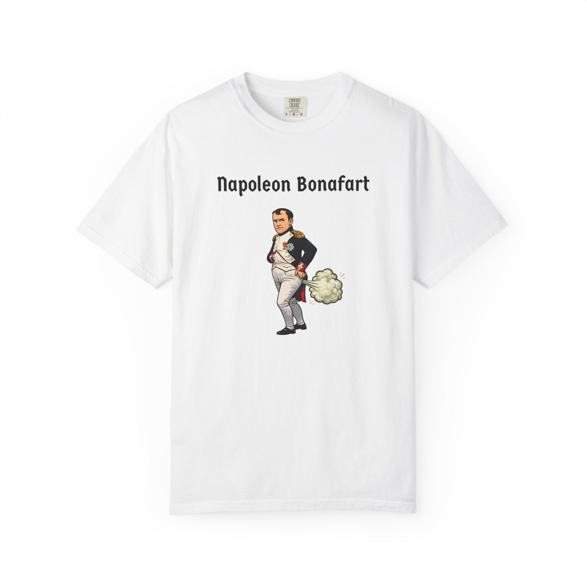 With this explosive parody tee, Napoleon Bonaparte strikes his iconic pose—hand in jacket, dramatic stare—but a massive green fart cloud erupts behind him like cannon fire—"Napoleon Bonafart": conquering Europe one silent-but-deadly blast at a time. An empire built on hot air!