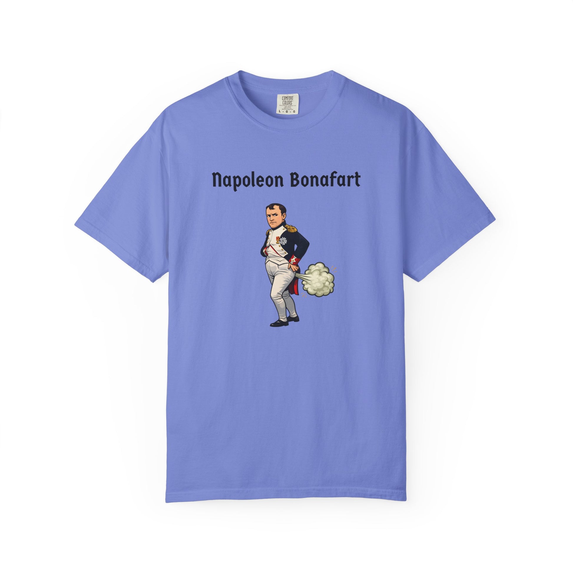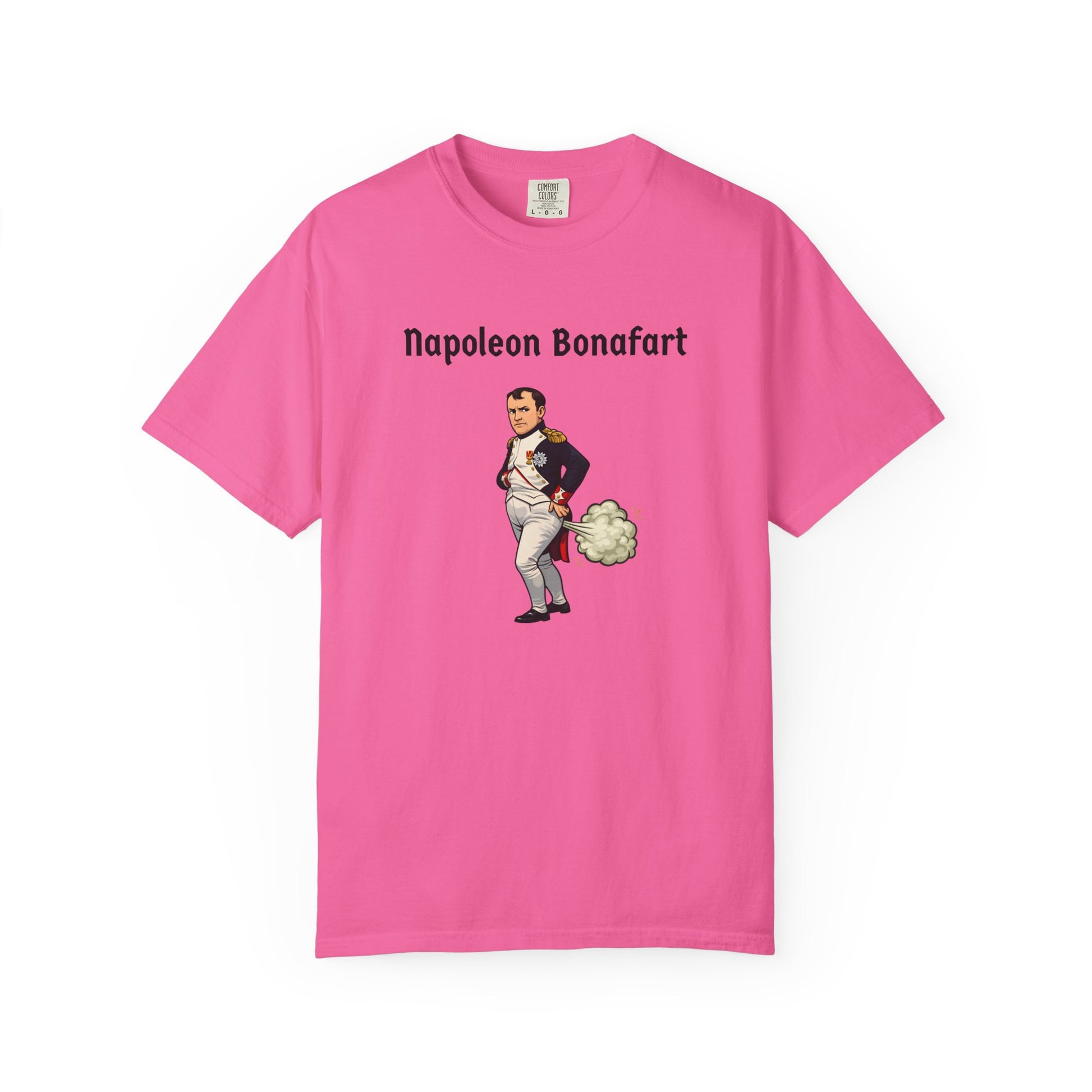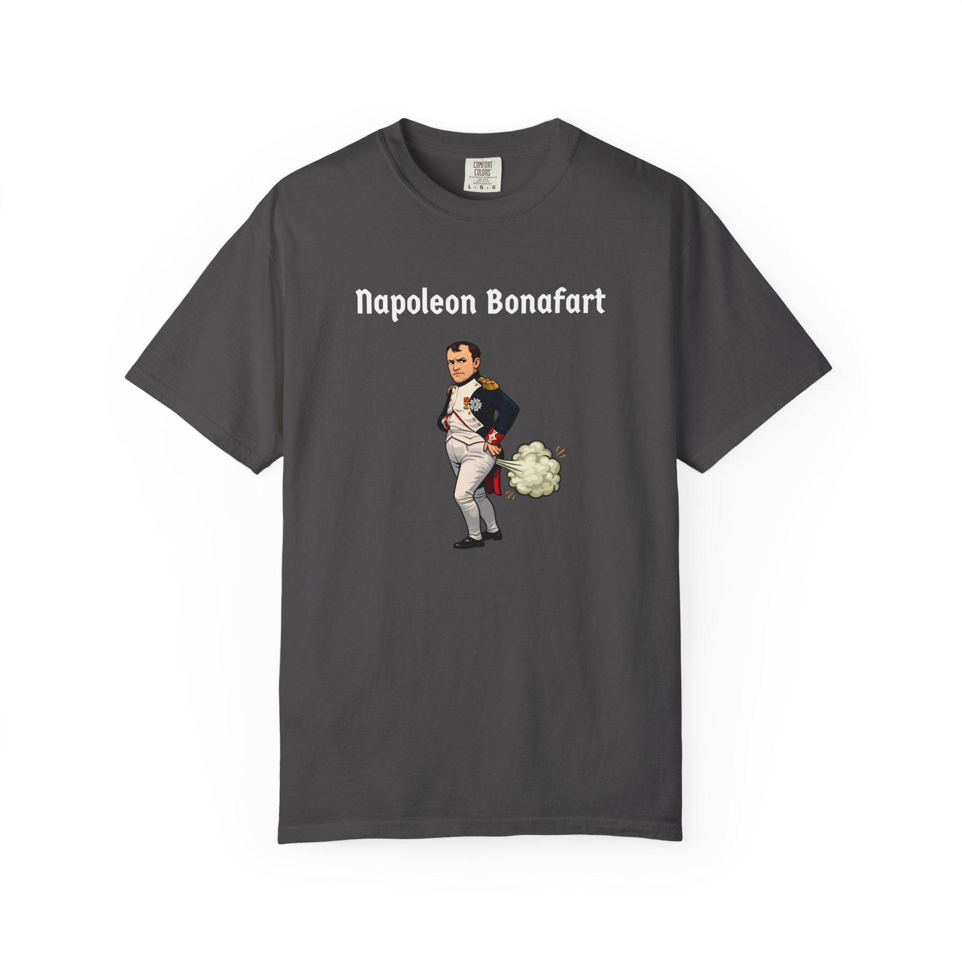With this explosive parody tee, Napoleon Bonaparte strikes his iconic pose—hand in jacket, dramatic stare—but a massive green fart cloud erupts behind him like cannon fire—"Napoleon Bonafart": conquering Europe one silent-but-deadly blast at a time. An empire built on hot air!